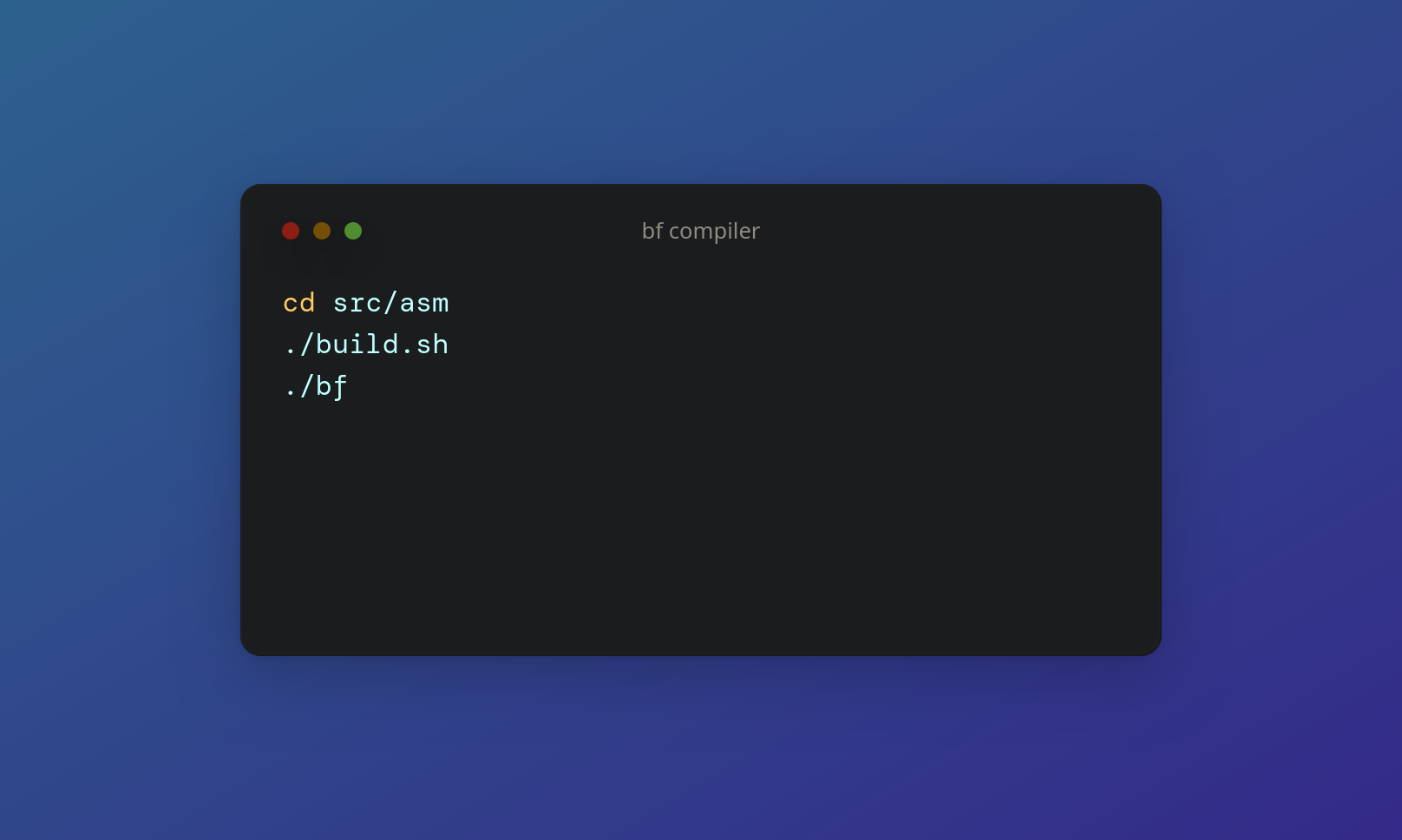 A BF language compiler written in C++ for linux x86_64 intel architecture