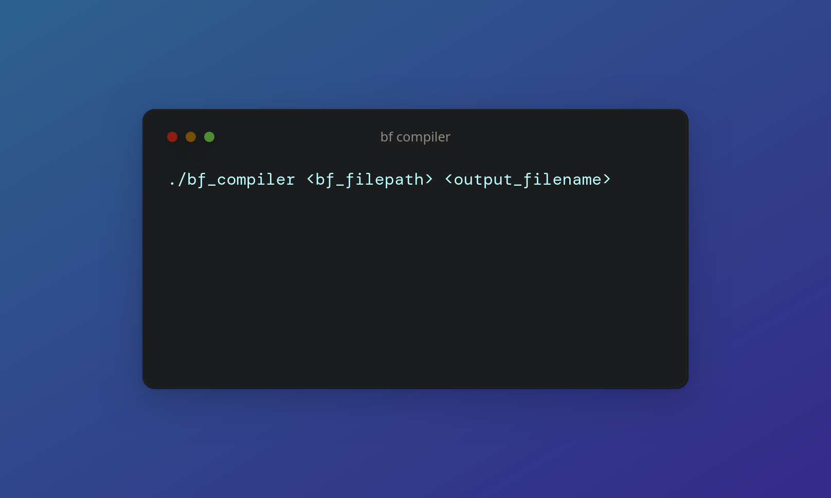 This project is a compiler targeting the linux x86_64 intel architecture for the brainfck programming language written in C++. Allowing to create executables reflecting the content of the brainfck script.