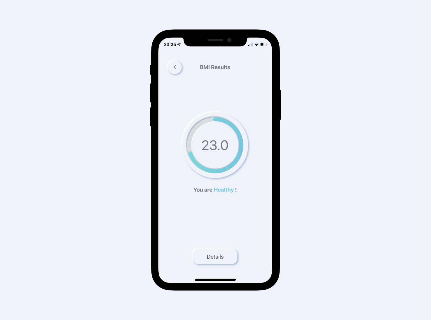 The BMI is then displayed in the circle as well as the weight category of said BMI (here, 'Healthy').