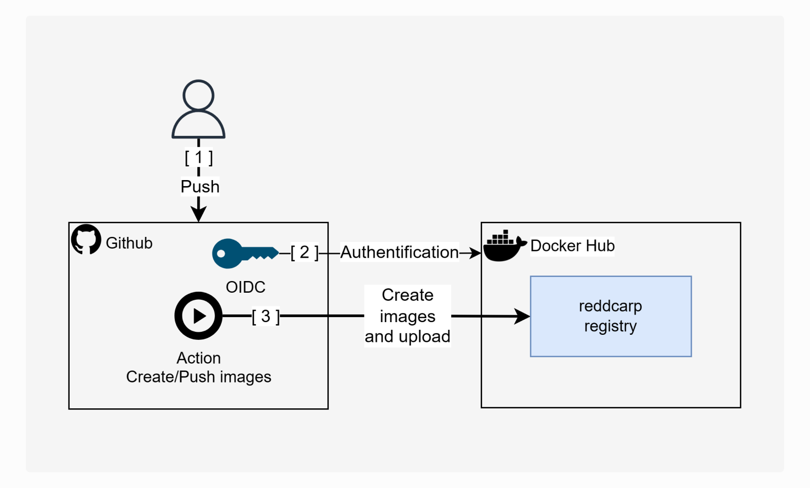 1. The developer pushes code to the repository's main branch.
