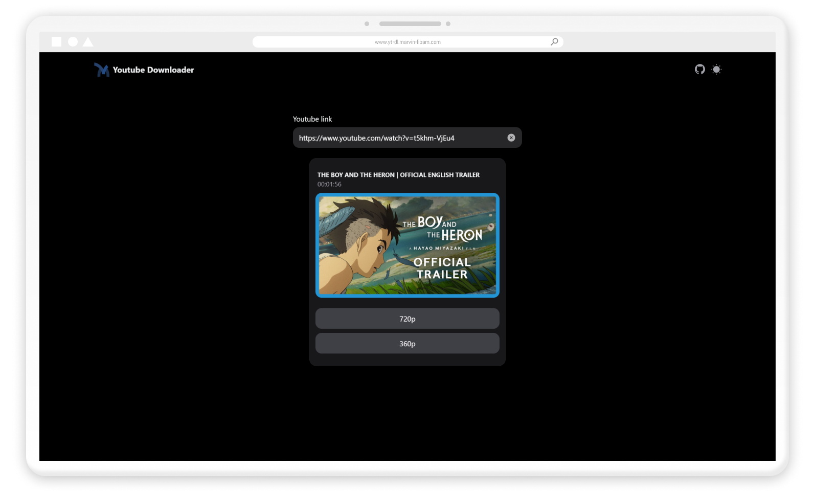 To try the application head over to yt-dl.marvin-libam.com on any browser.